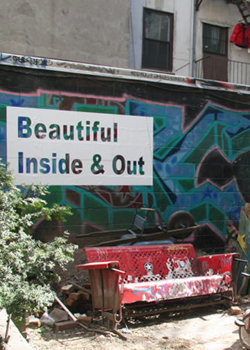 I am attracted to the images and language associated with real estate. I choose the words from local real estate listings, to draw from language specific to the neighborhood. The words begin to take on a nuanced feeling when they are out of the context of the publication, but still connect to the community. They words are trite, but they also have a hint of poetic hopefulness. Each letter is unique, with the graffitied surface of the building showing through. The signs refer to the space very directly, and suggest that this space is affected by new commercial and residential developments. And although change is inevitable, it is important to think about what is lost in the process. |