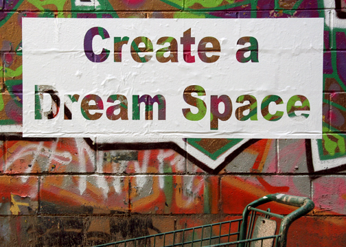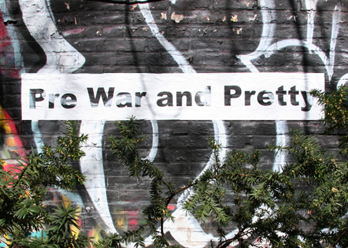Vinyl signs over existing graffiti. Words taken from local real estate listings.