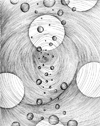 All drawings in this ongoing series are rapidograph pen paper. The circular motif is explored and expanded through repetition and variation in color and composition.