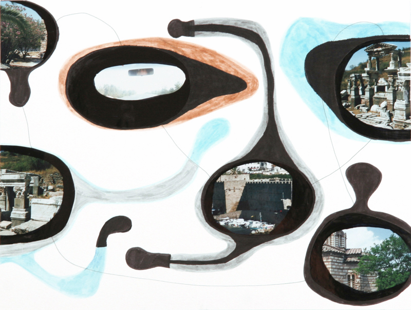 | Each Rumi Drawing is a work on paper, 11 x 15 inches. These drawings are a combination of cut photographs, marker and/or paint. Titles reflect Rumi quote on verso. All quotes are taken from "Crazy As We Are," by Mevlana Celaleddin Rumi; translation by Dr. Nevit O. Ergin. |