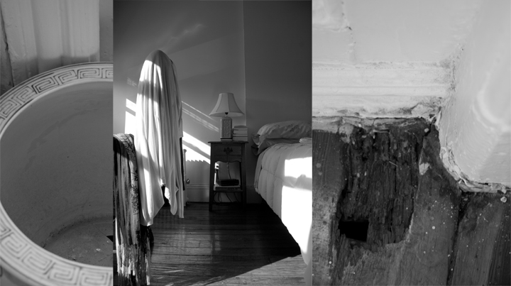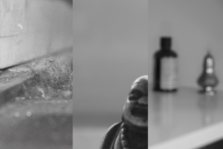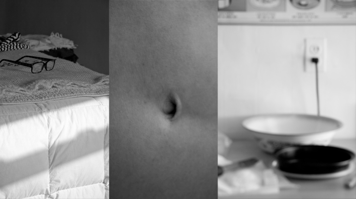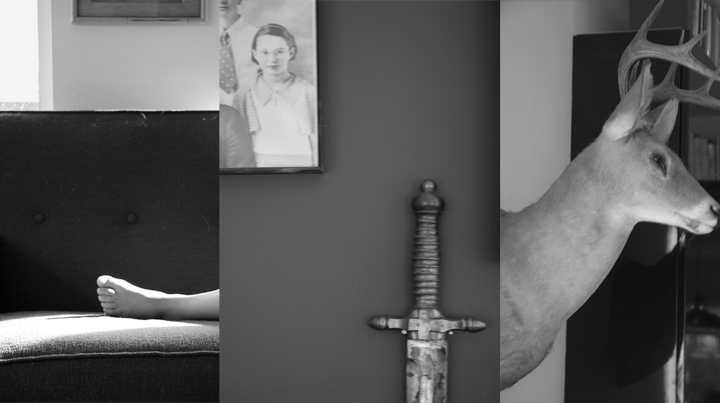 TRANSITIONS “Transitions” is a series of black-and-white photographic triptychs. Each triptych combines scenes from domestic life, but employs a non-traditional, non-sequential narrative structure. From mass graphic communications to the rapid stream of social media, photography is more ubiquitous than ever in contemporary life. I am interested in recording subtle, personal moments in time, using the tradition of black and white photography. These triptychs make use of compositional elements like lighting, texture and geometry, and embrace traditional subjects, such as the figure, domesticity and the still life. They also use the storytelling aspects of cinema by cutting from one scene to another, but overlook a linear structure that resolves the narrative. Combinations of architectural and figurative imagery create formal as well as psychological shifts in the work. Ultimately a mood emerges: sometimes humorous in nature, sometimes peaceful, other times claustrophobic or somber. A deer head, a sword and a child’s foot offer a disjointed version of the saying “from head to toe”; a stream of consciousness sequence features a pair of eyeglasses on a bed pointing towards a belly button, which is positioned next to a kitchen electrical outlet and an umbilical-cord-like plug. In a world where human experience is increasingly fragmented and impersonal, this work compels viewers to identify similar moments from their everyday lives and gain a heightened understanding of perception, memory and emotion. |