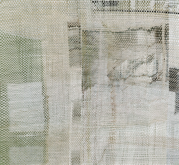 , Interior, 2004, woven magazine pages, 8 1/2 x 8 inches