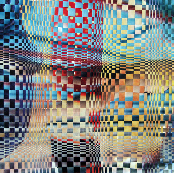 , Fire Water, 2004, woven magazine pages, 8 1/2 x 8 inches